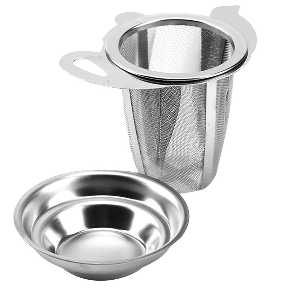 Tea Infuser for Loose Tea, Stainless Steel Mesh Herb Ball Strainer with Drip Tray, Fits Mugs and Teapots, 1pc
