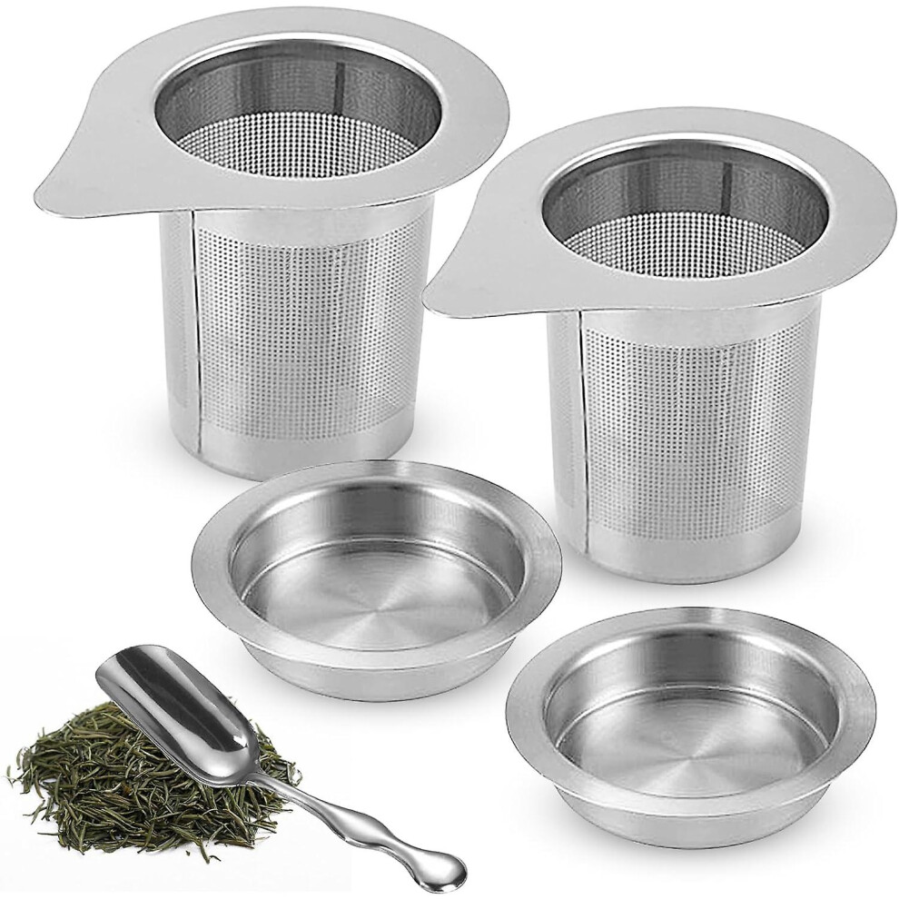 (As show, One size) 2pcs Tea Infuser Single Handle, Tea Filter with Lid and Teaspoon, Stainless Tea Infuser, Tea Filter for Teapots, Cups