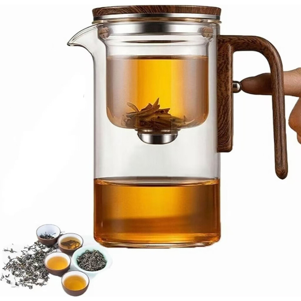 (1-Multicolor) Tea Pot, Kettle Pot, Magic Tea Pot, Water Separation Glass Pot with Wooden Handle, Push Control Magic Teapots