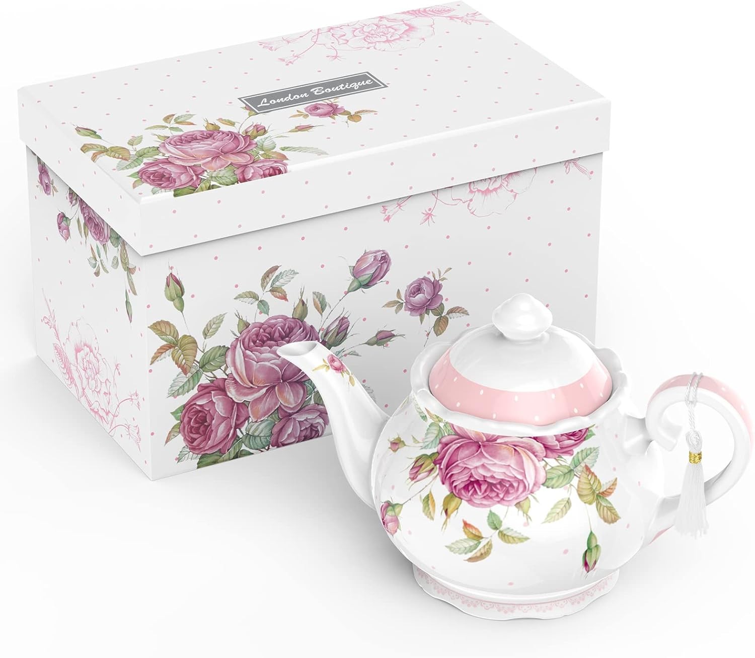 teapots for 4, Ceramic Tea Pot 1.3L Perfect 4 Cups Teapot China Vintage Flora Gift Box 1300ml (Tea Pot only)