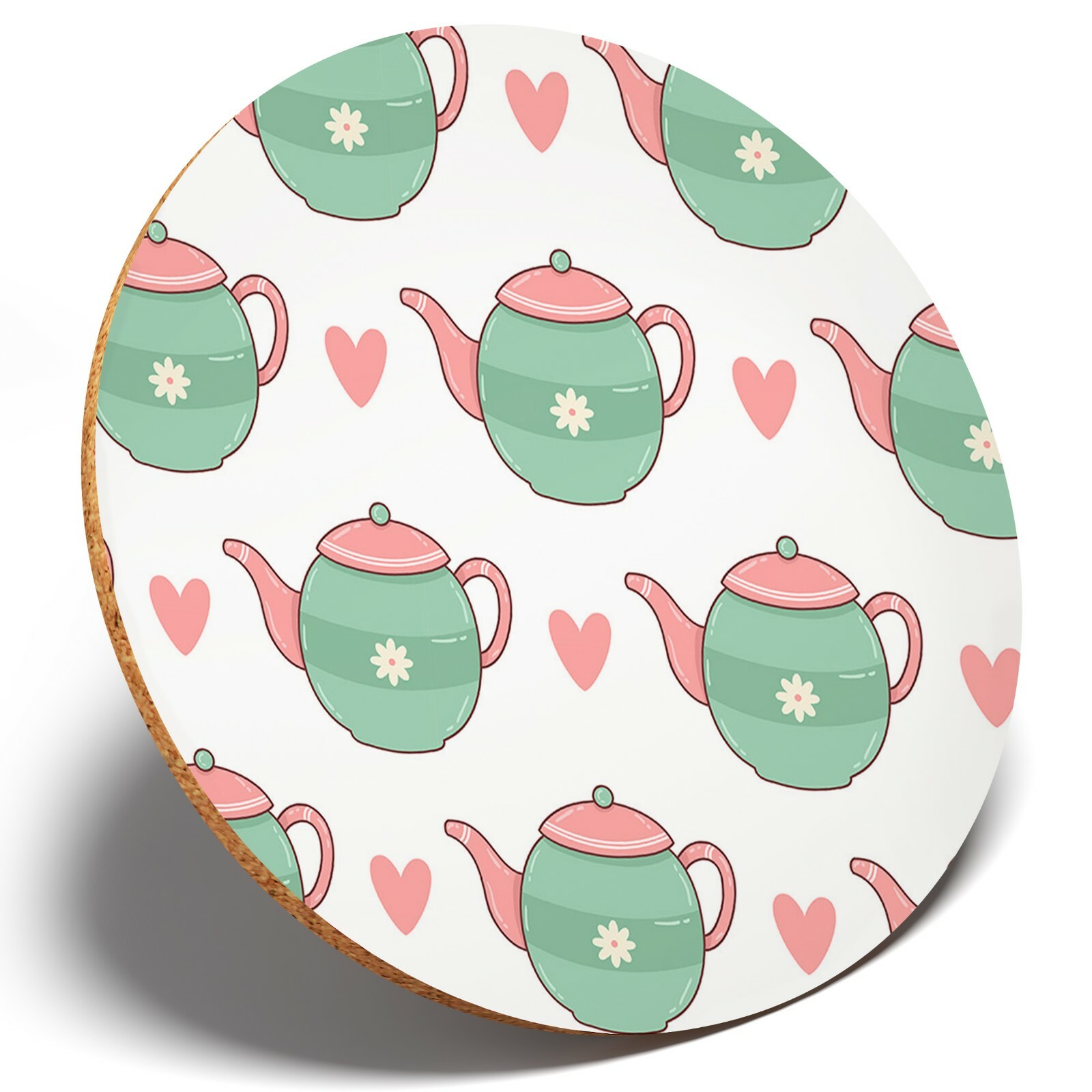1 x Cute Teapots Pretty Love - Round Coaster Kitchen Student Kids Gift #12418