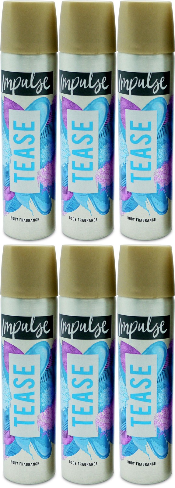 6 PACK IMPULSE FINE FRAGRANCE BODY SPRAY - TEASE 75ml