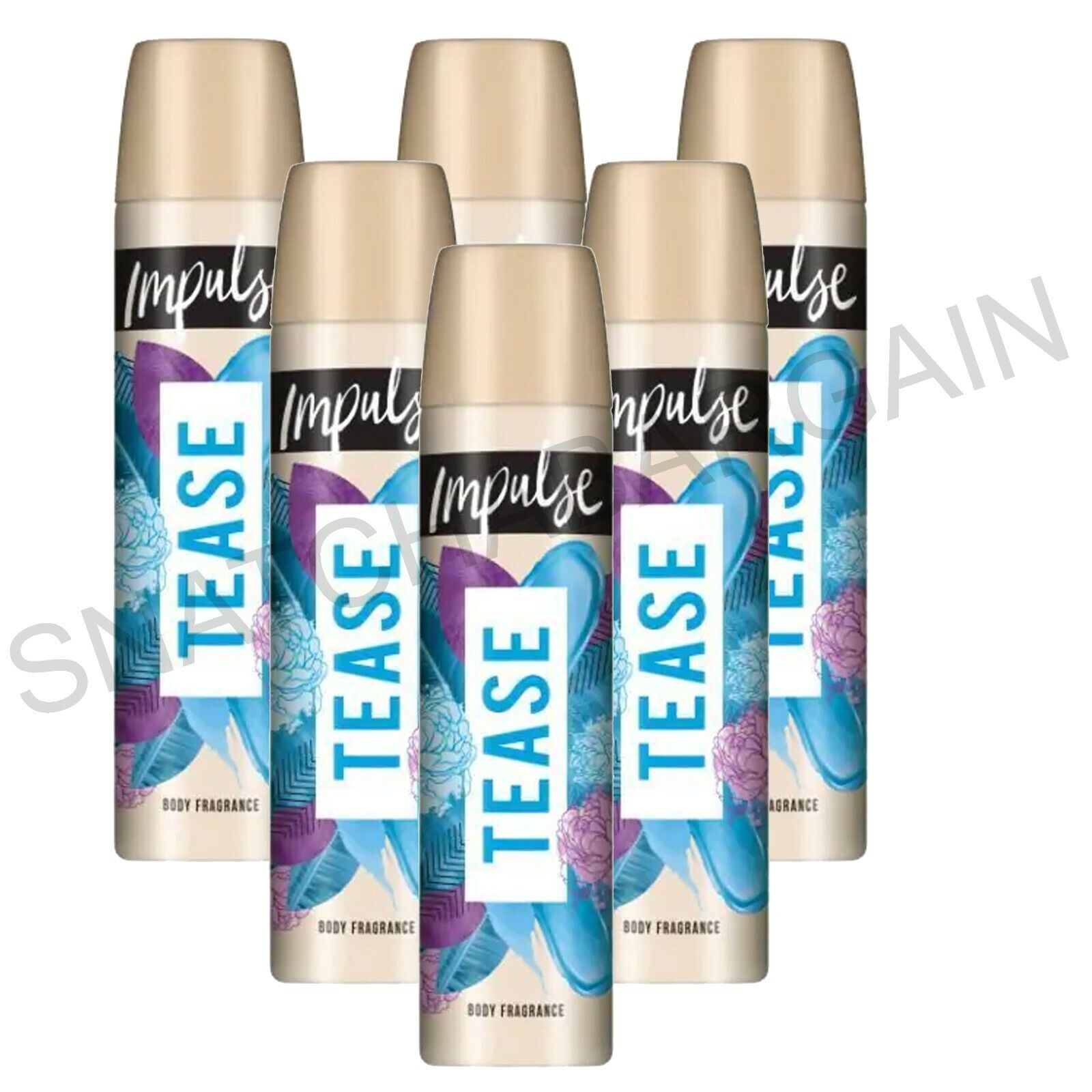 6x Impulse TEASE Body Fragrance Spray Deodorant 75ml