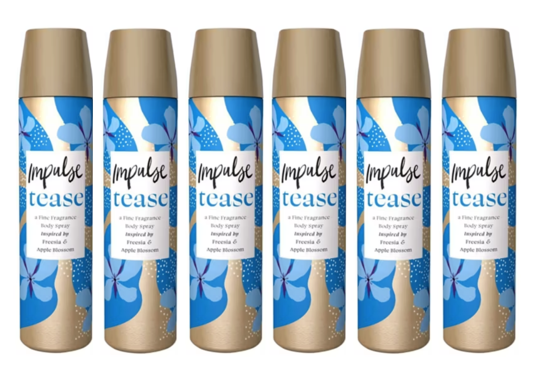 6 X IMPULSE BODY FRAGRANCE 75ml SPRAY TEASE - FREESIA & APPLE BLOSSOM