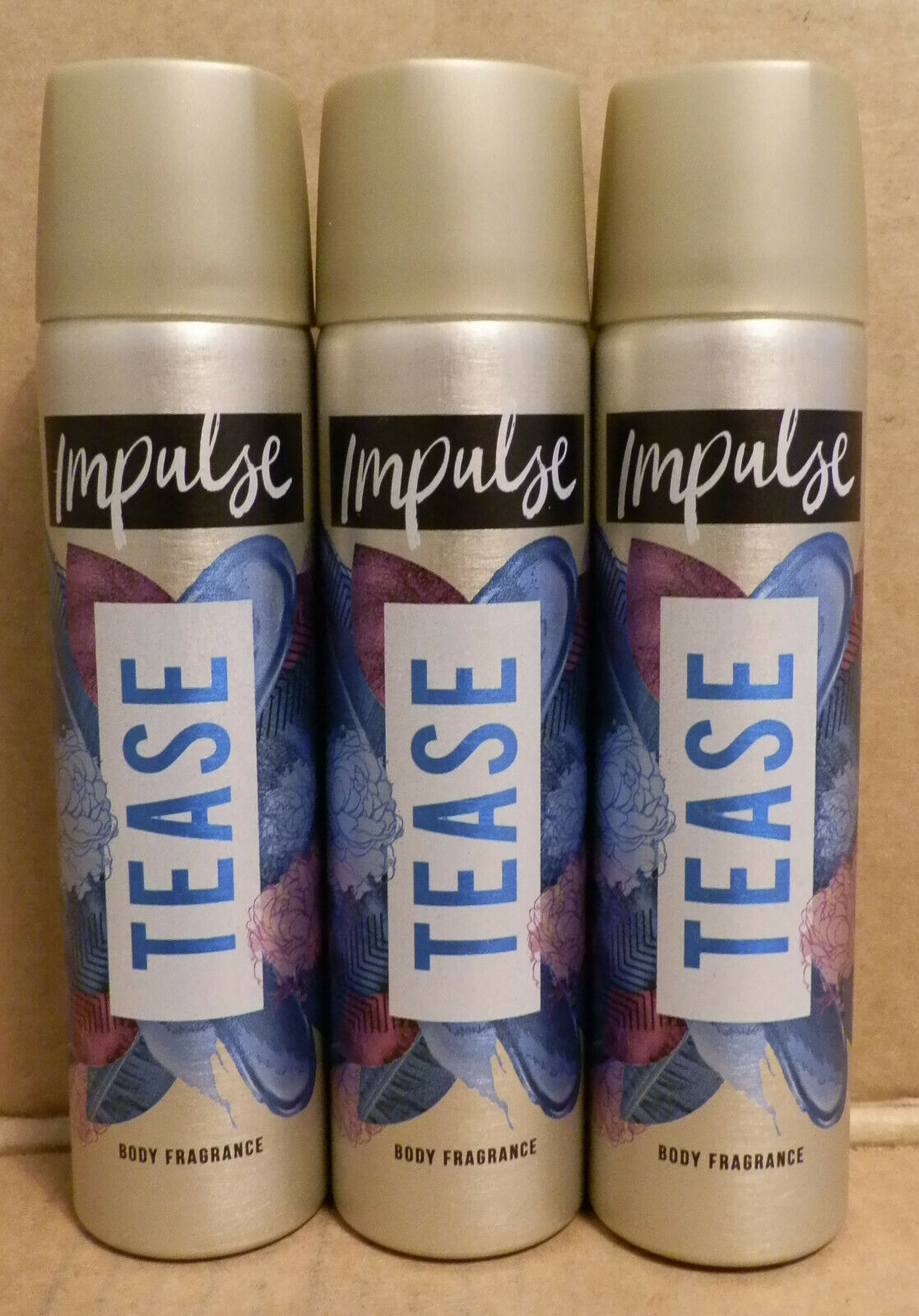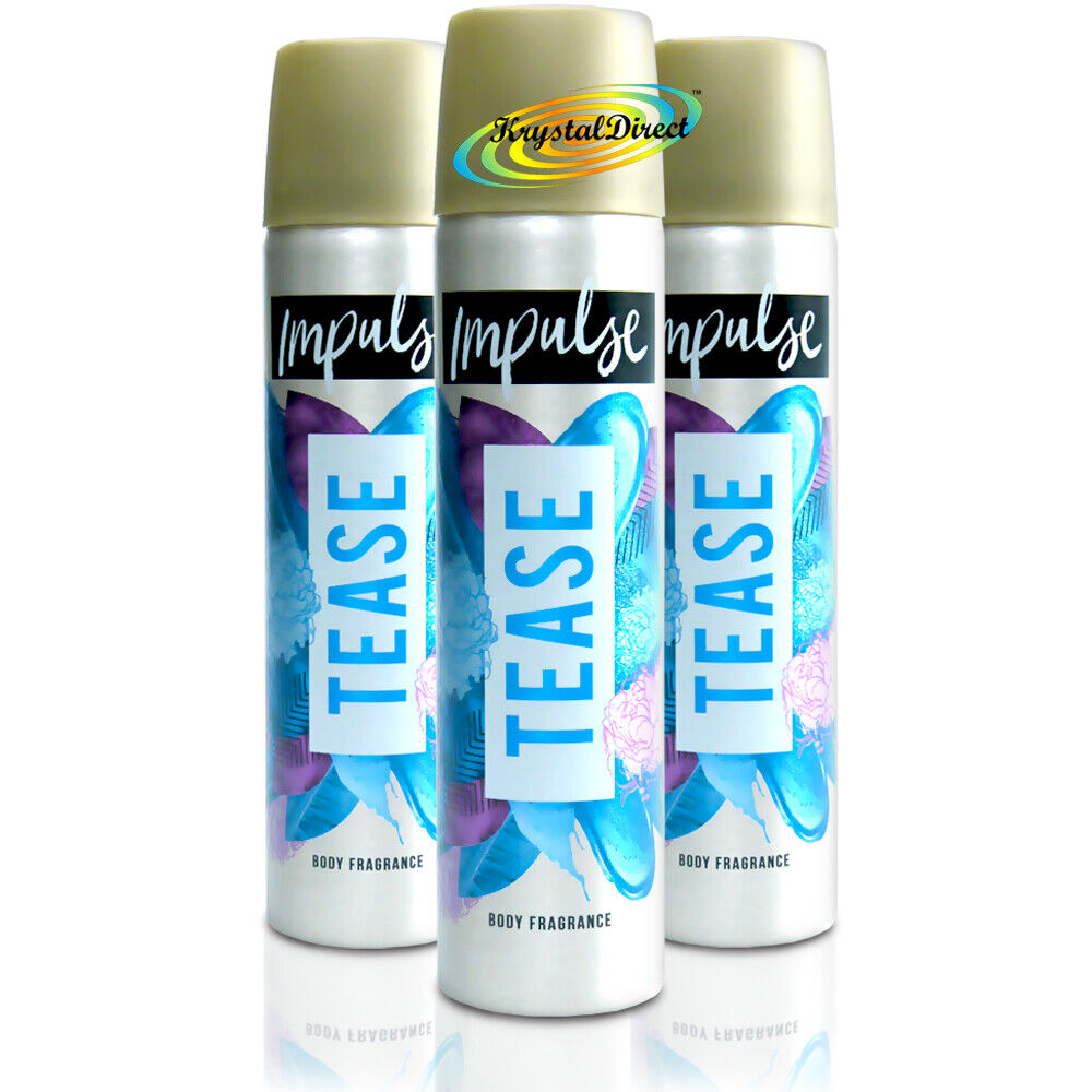 3x Impulse TEASE Body Fragrance Spray Deodorant 75ml