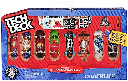Tech Deck, 25th Anniversary 8-Pack Fingerboards with Exclusive Figure, Collectible and Customisable Mini Skateboards, Kids’ Toys for Ages 6 and up