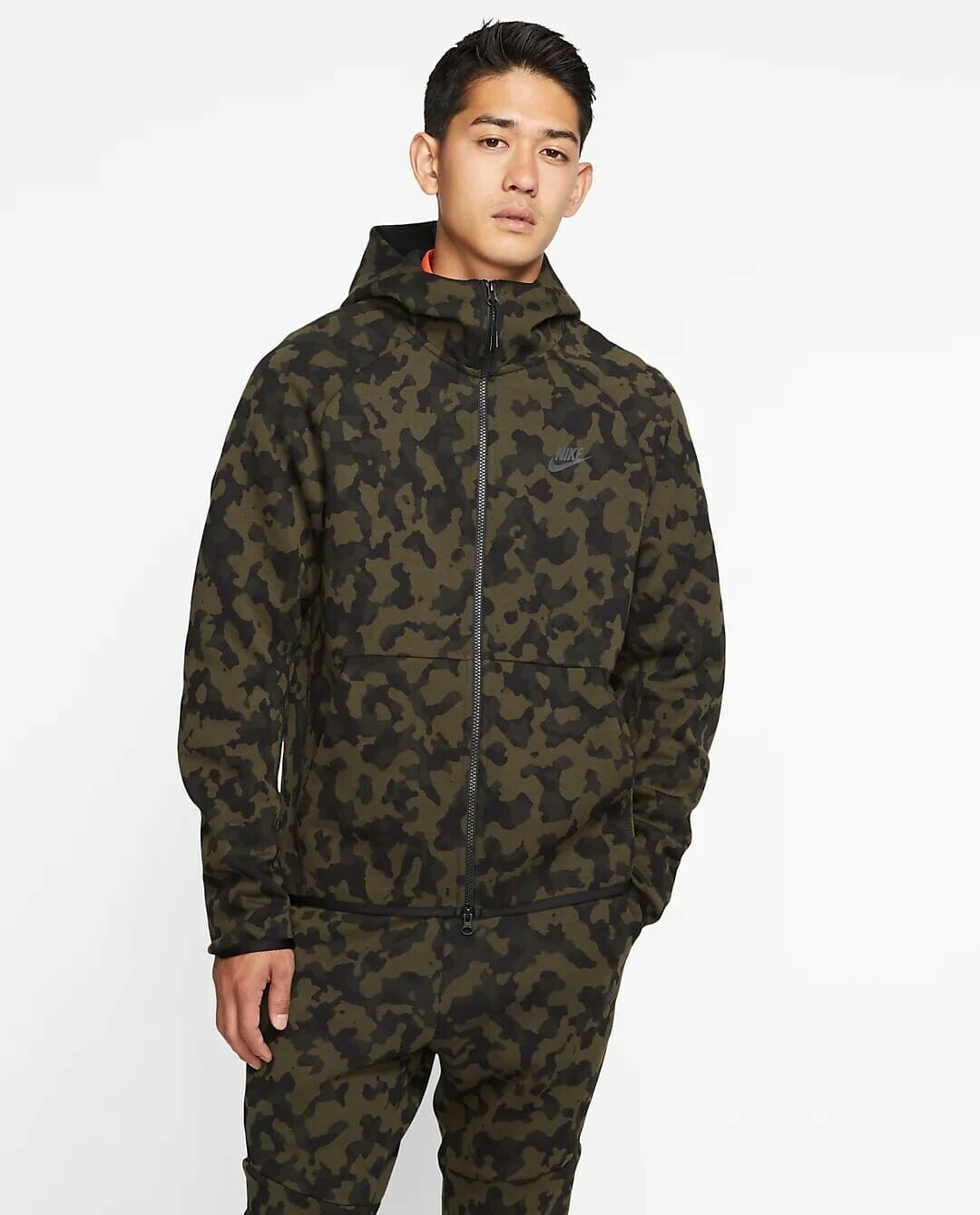 Nike Tech Fleece Camo Windrunner Hoodie Zip Tracksuit Sz M Olive Black CJ5975 22