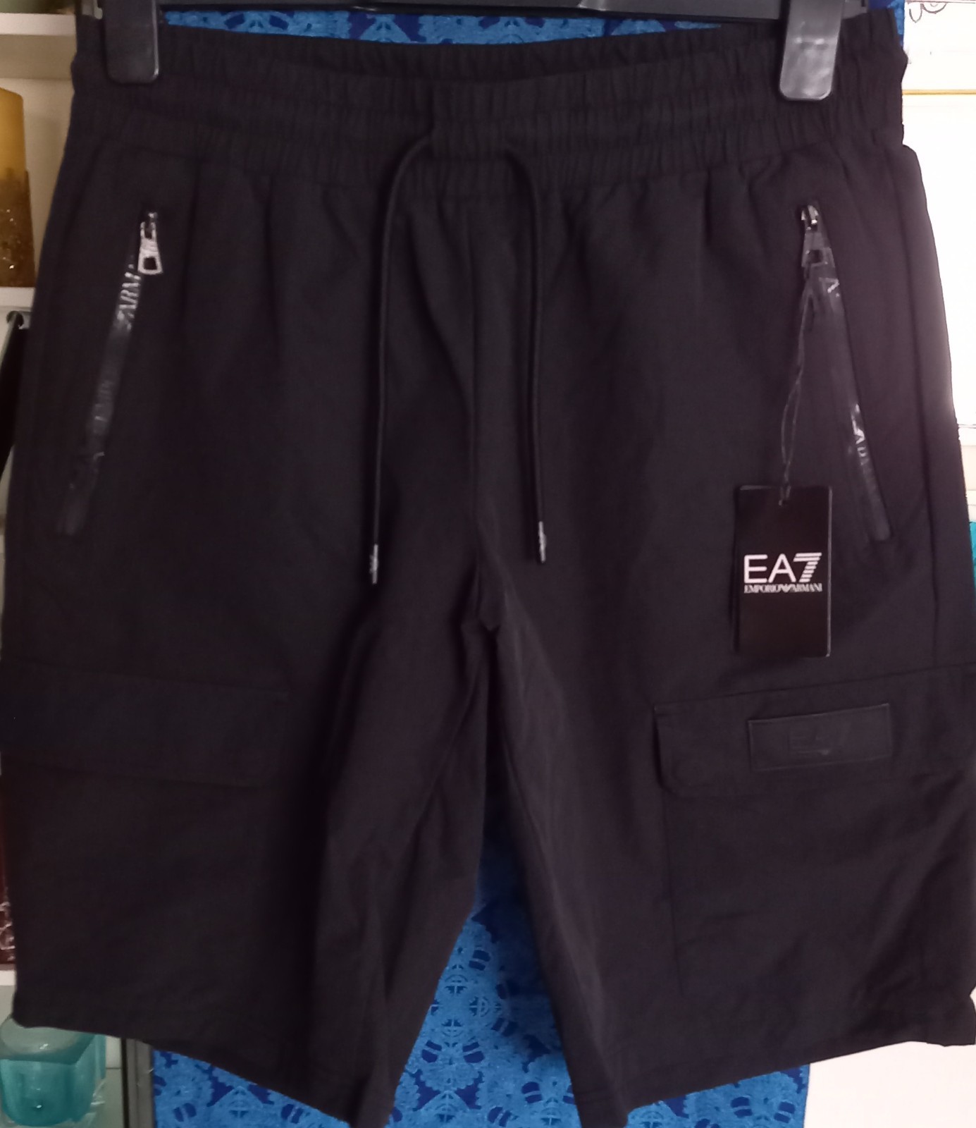 Emporio Armani EA7 Woven Cargo Tech Shorts in Black, Men's Size Small
