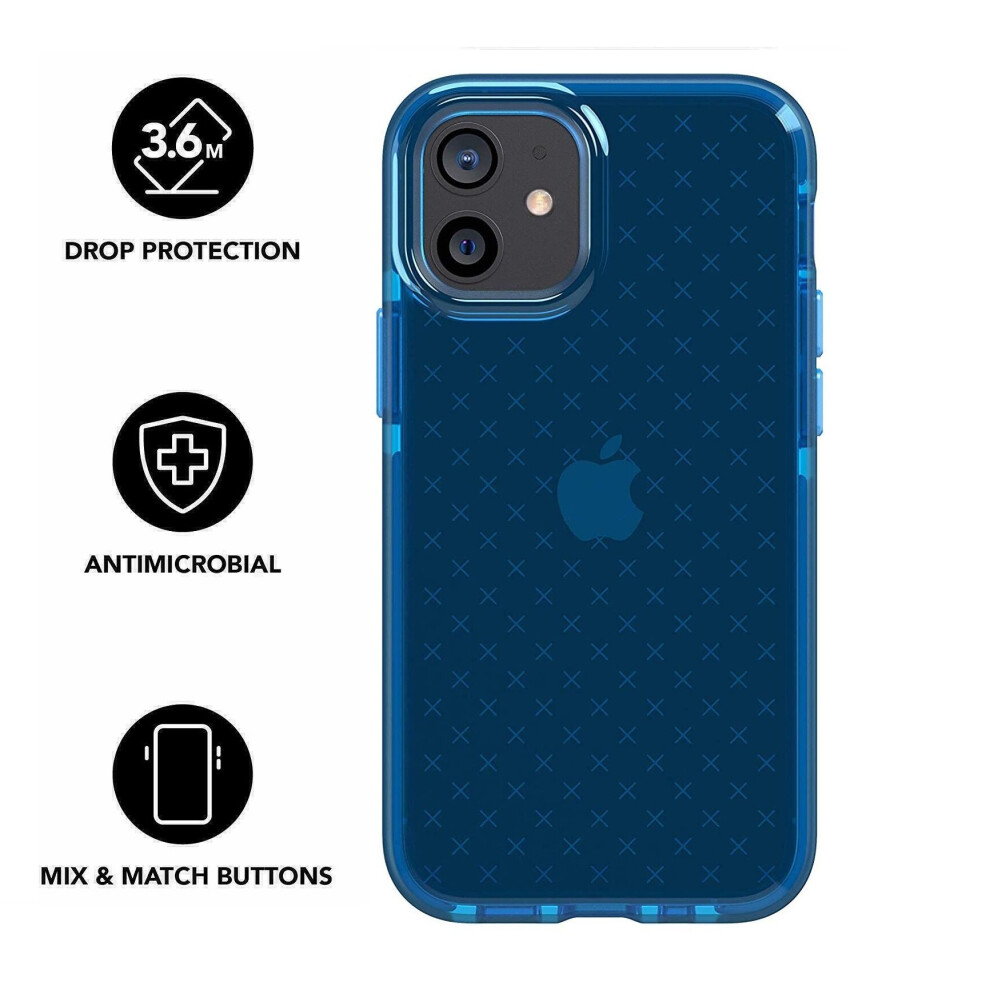 Tech21 Evo Check for Apple iPhone 12 mini 5G - Germ Fighting Antimicrobial Phone Case Cover with 3 Meter Drop Protection - Classic Blue