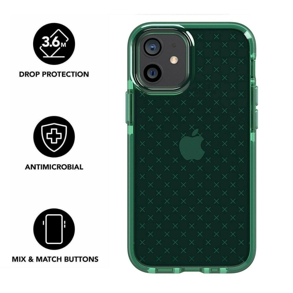 Tech21 Evo Check for Apple iPhone 12 / 12 PRO - Germ Fighting Antimicrobial Phone Case Cover with 3.6 Meter Drop Protection - Midnight Green