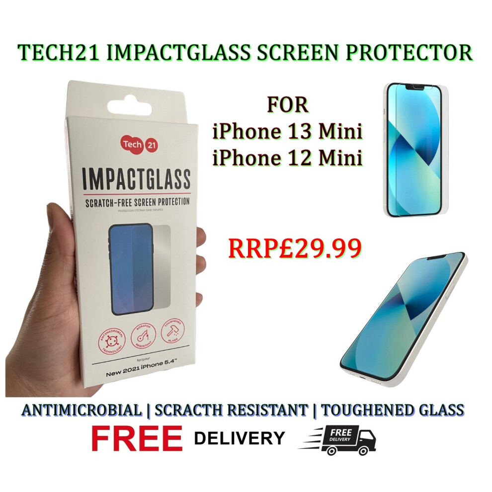 Tech21 ImpactGlass Screen Protector [ For Apple iPhone 13 Mini | 12 Mini ] Antimicrobial, Scratch Resistant, Toughened Tempered Glass