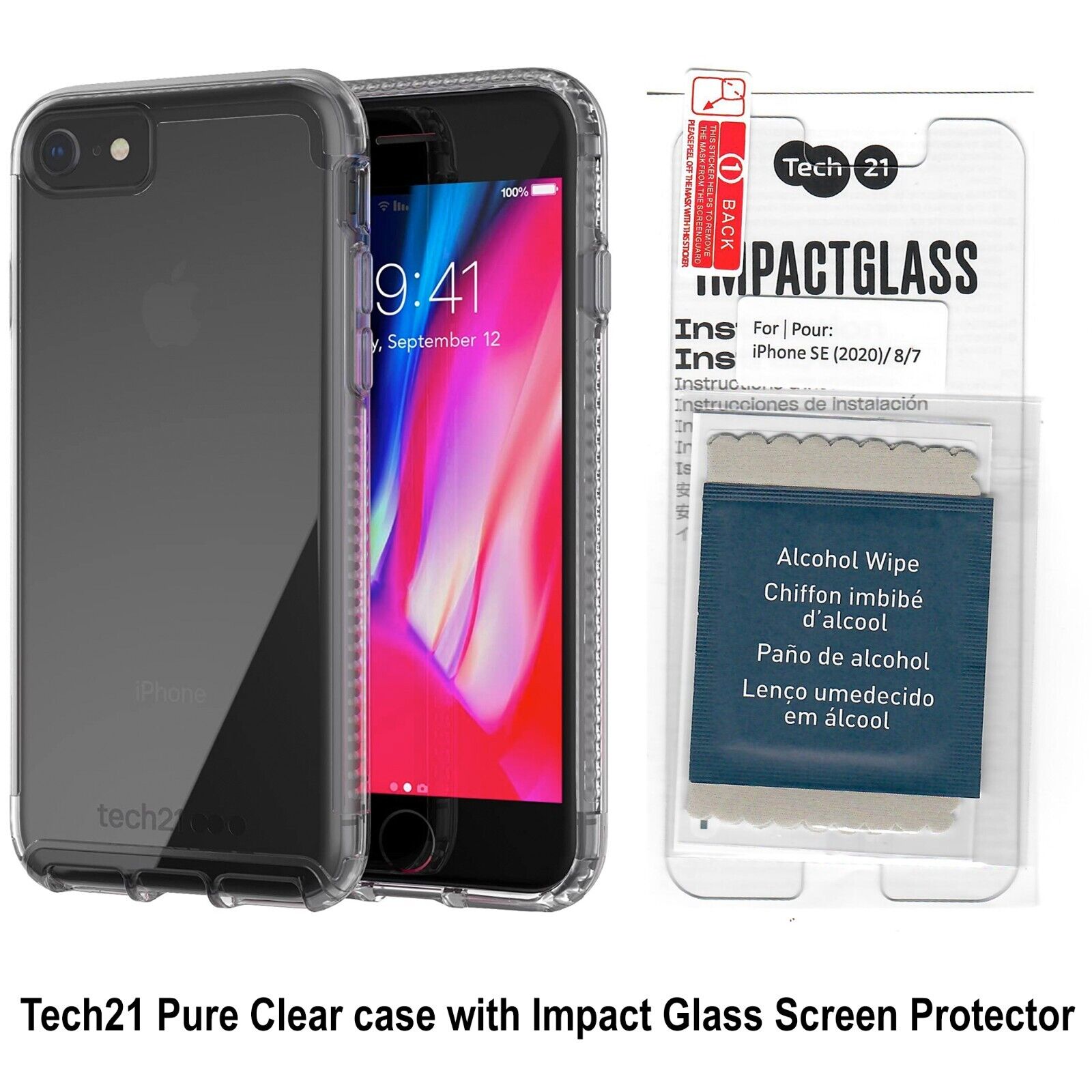 Tech21 Pure Clear Case with Impact Glass Screen Protector for iPhone SE