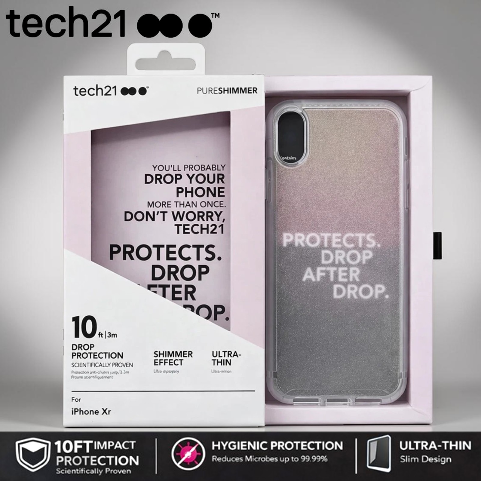 Tech21 (iPhone XR) Case Pure Shimmer Tough Shockproof 10ft Drop Protection Cover