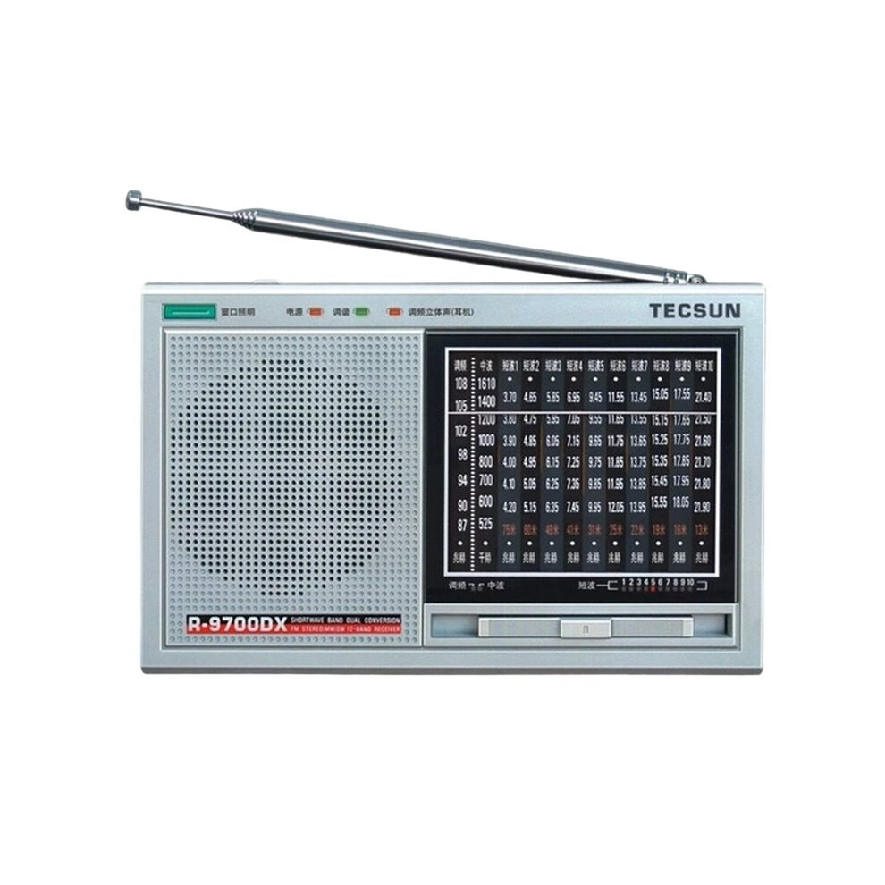 Tecsun R9700DX SW MW FM World Band Radio Receiver High Sensitivity Portable Shortwave Radio Clear Sound, Silver, CN Plug