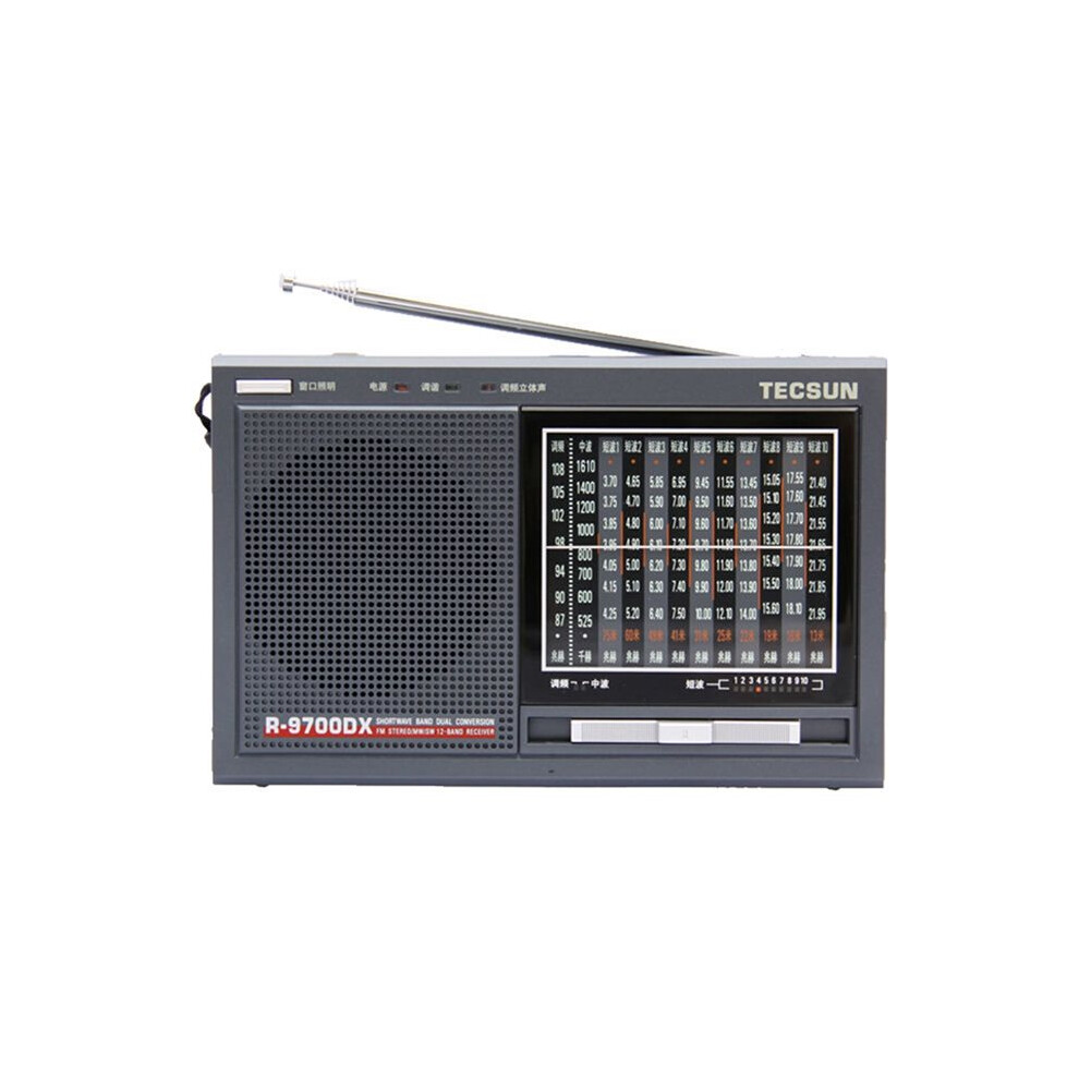Tecsun R9700DX SW MW FM World Band Radio Receiver High Sensitivity Portable Shortwave Radio Clear Sound, Gray, CN Plug