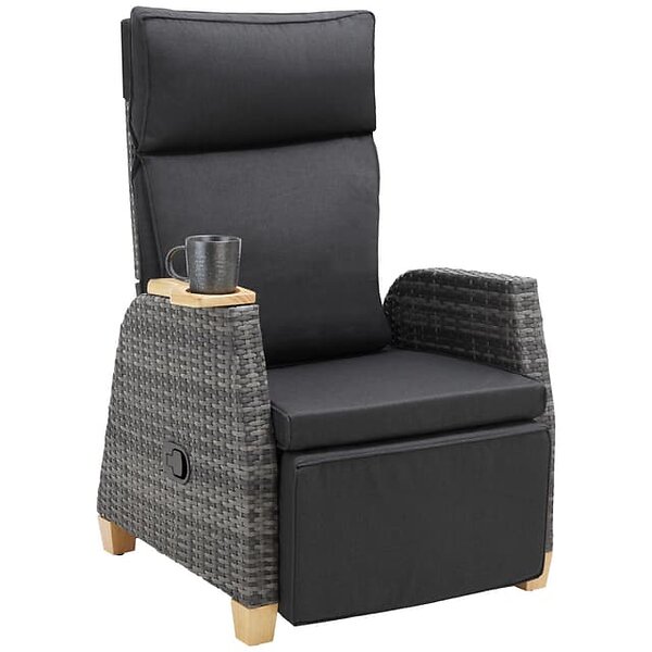 tectake® Rattan Garden Sun Lounger, 6-Level Adjustable Backrest, Plastic Weave, Outdoor and Indoor Use, Easy-Care Garden Recliner Chair with Padding & Cushion, Rubber Wheels - grey