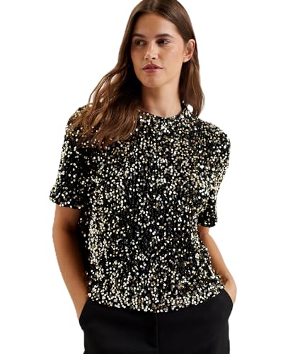 Ted Baker Womens Wmb-zarhaaa-Velvet Sequin Short Sleeve Tee Blouse, Black, 10 UK
