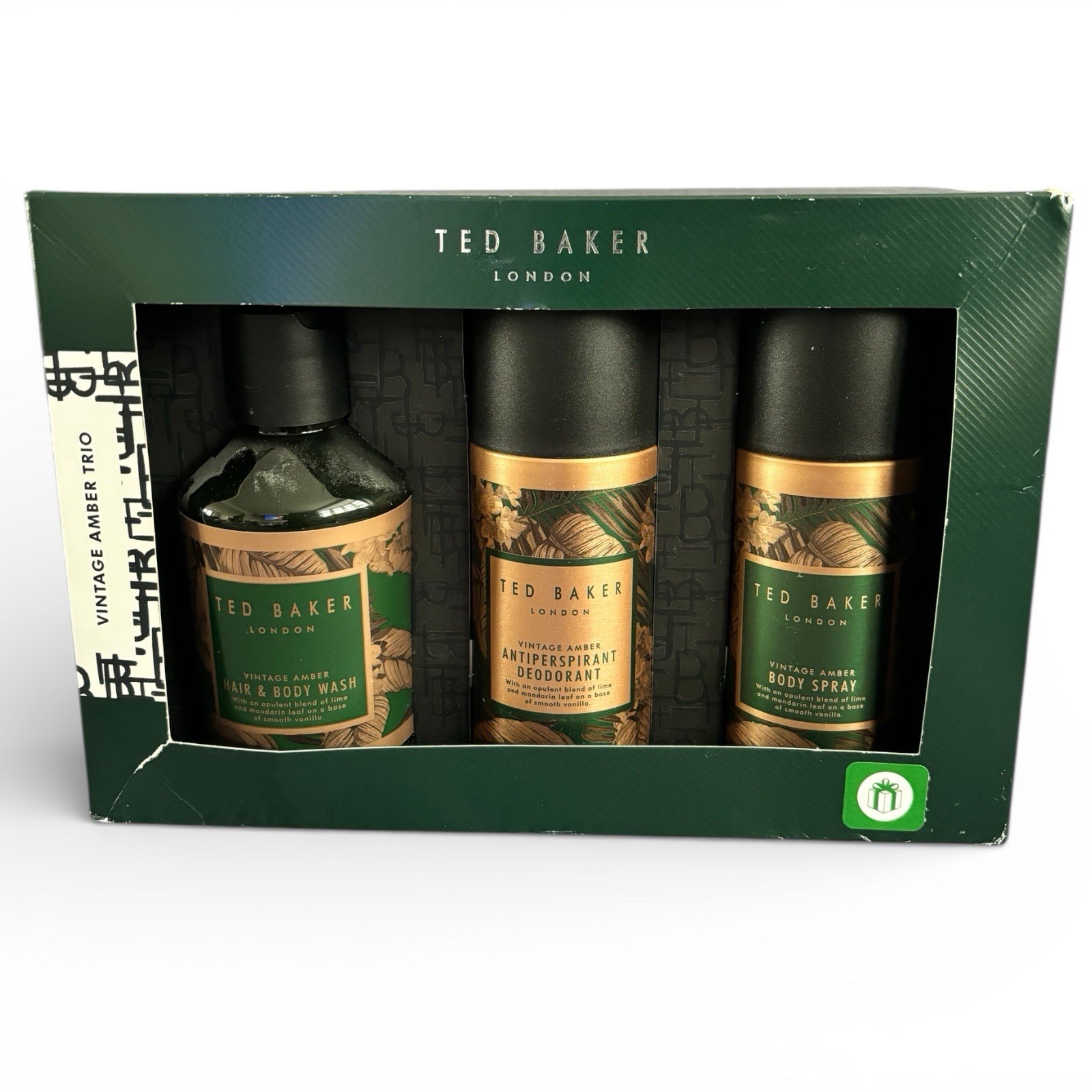 Ted Baker London Hair And Body Wash And Spray Gift Set Trio Vintage Amber NEW