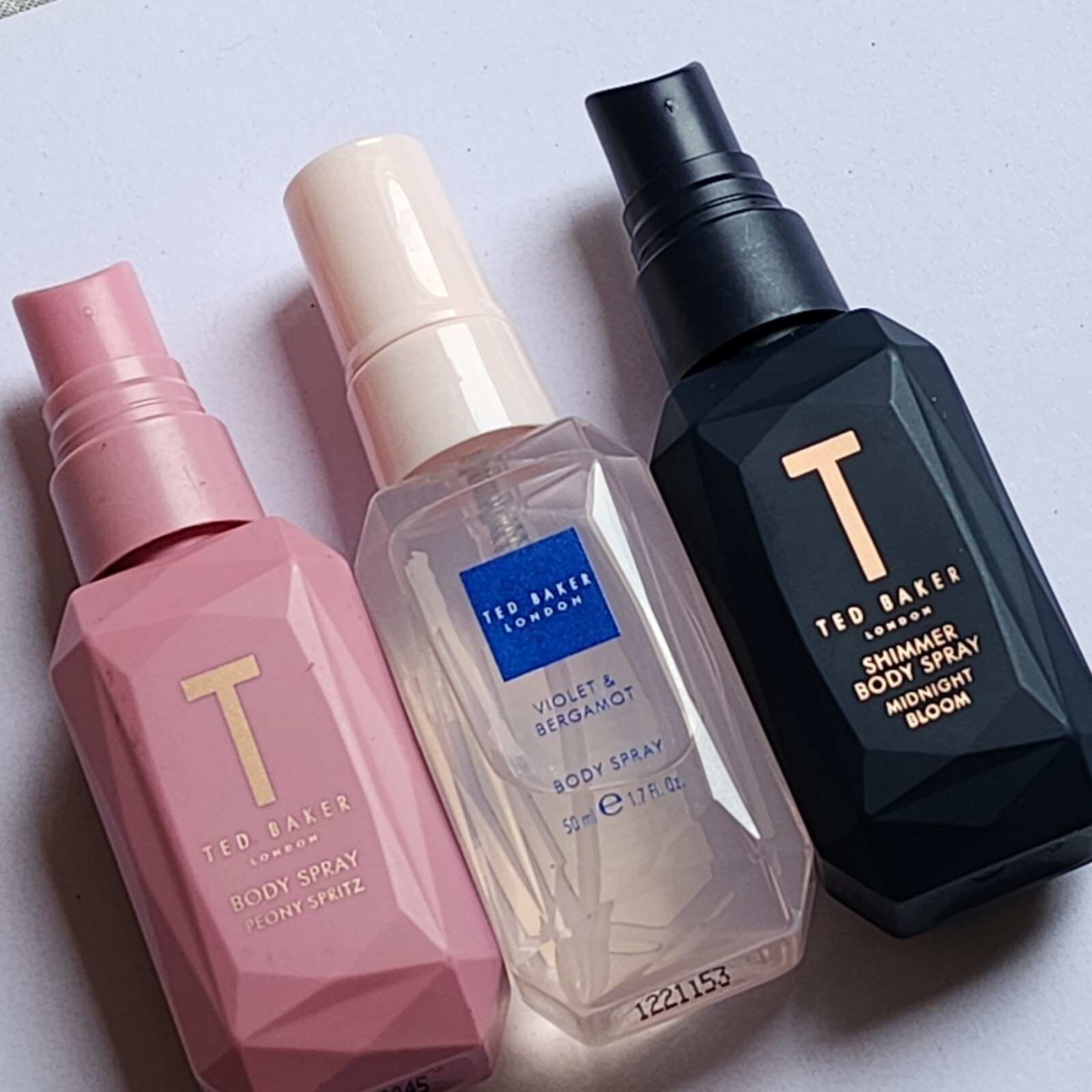 Ted Baker MIDNIGHT BLOOM Shimmer, PEONY SPRITZ, VIOLET & BERGAMOT Body Spray X3