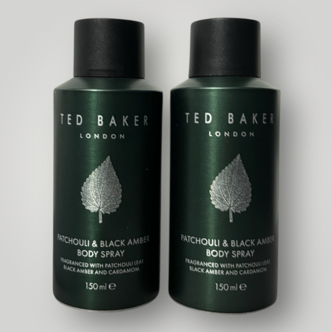 Ted Baker Men's Patchouli & Black Amber Body Spray 150ml X2 Brand New