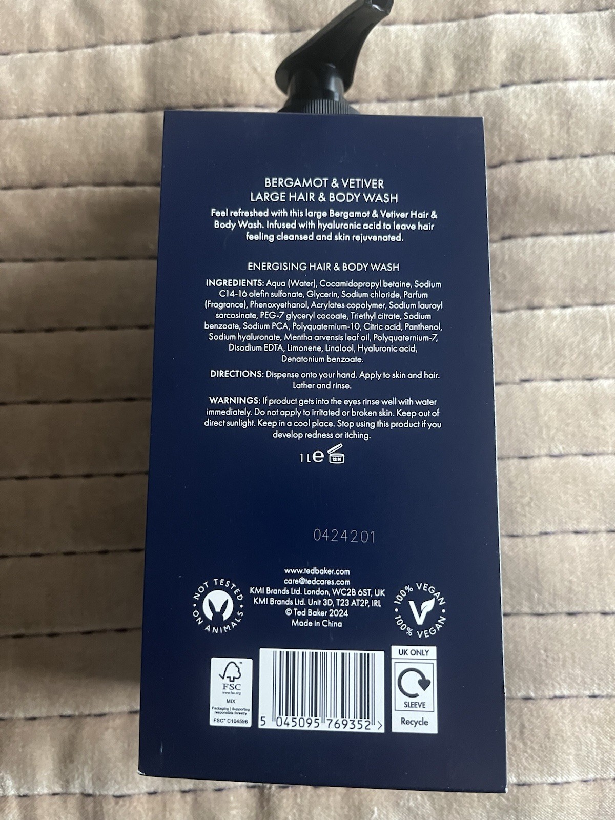 Ted Baker Energising Vetiver & Bergamot Hair & Body Wash 1000ml ~ FREE P&P