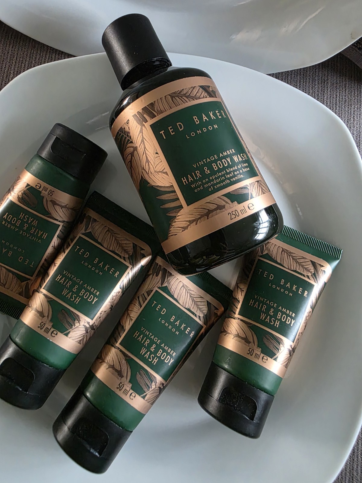 Ted Baker Mens Hair & Body Wash VINTAGE AMBER 250 ml +50 ×4 Bundle