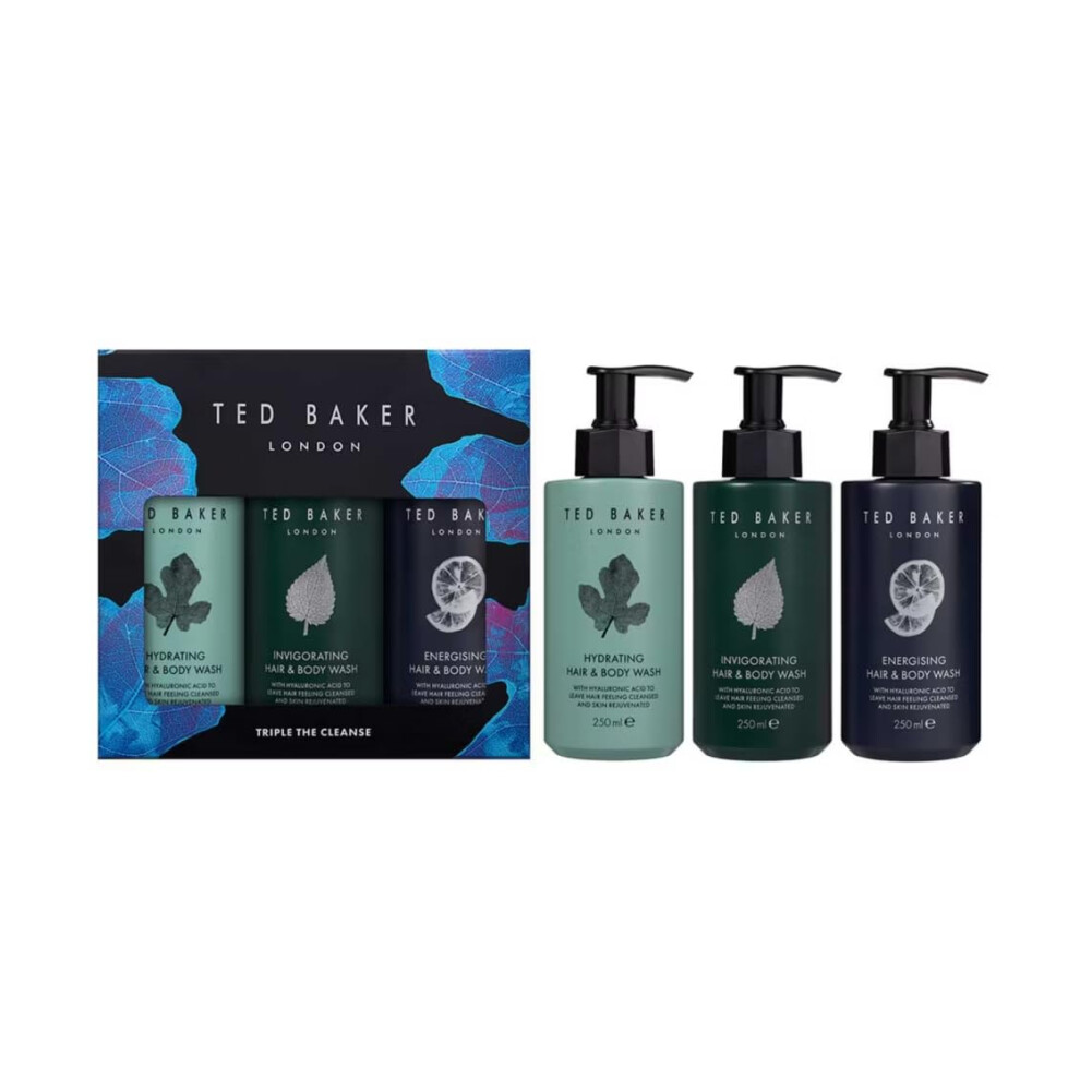 Ted Baker Mens Hair & Body Wash Trio Gift Set 250ml X3 Brand New Discontinued Uk