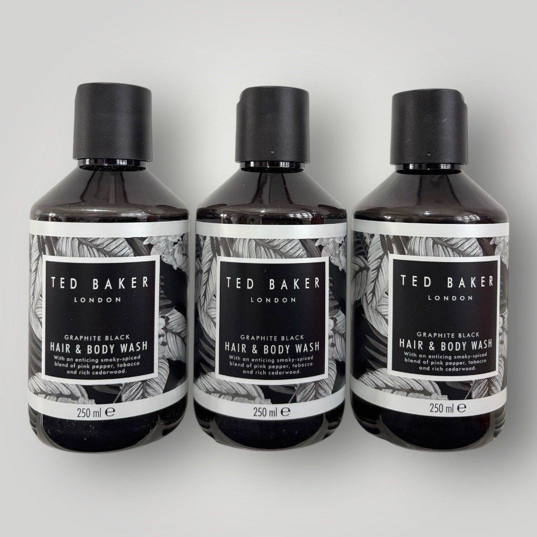 Ted Baker Graphite Black Hair & Body Wash 250ml Mens New X3