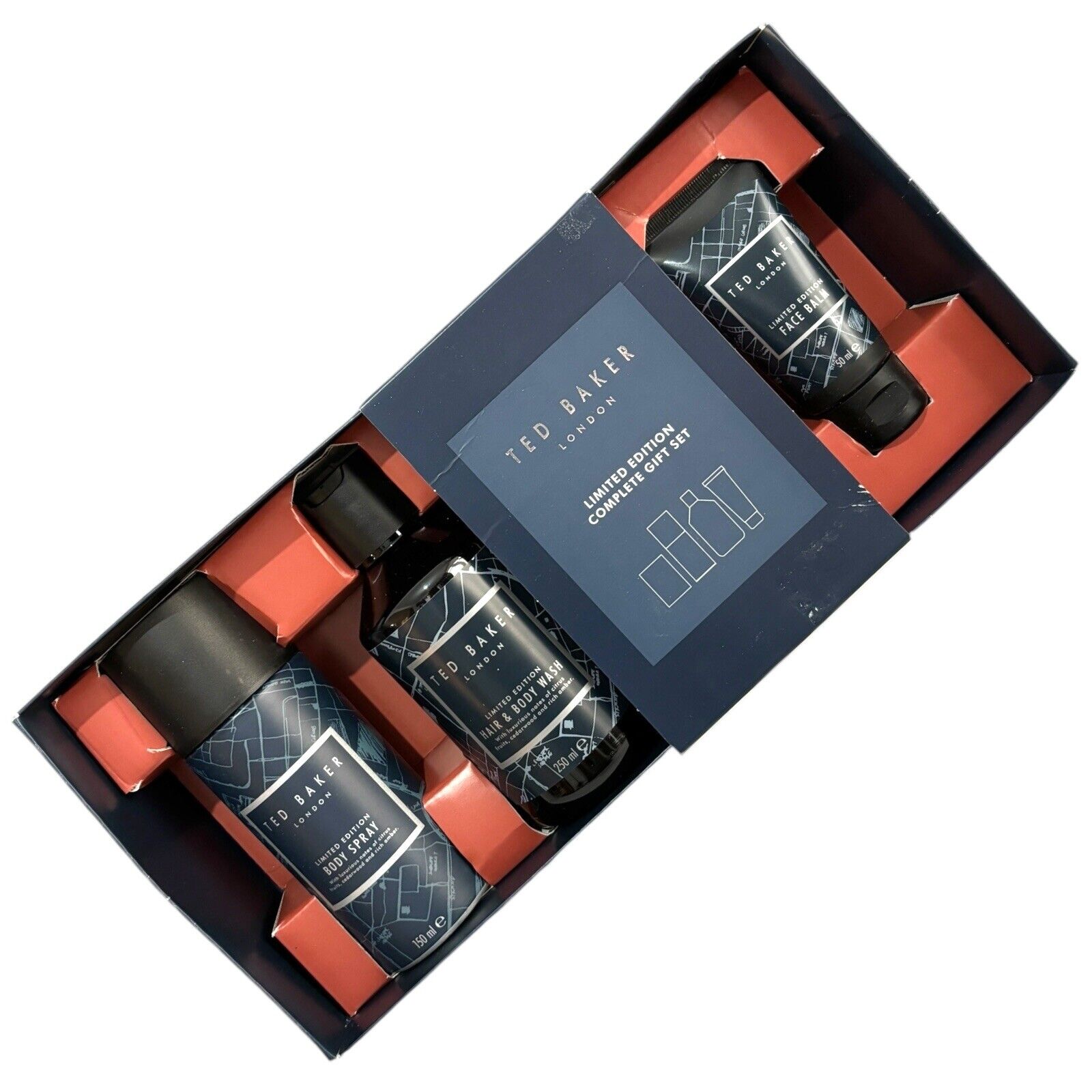 Ted Baker Mens Body Spray Gift Set Graphite Black~ Sterling Blue ~ Vintage Amber