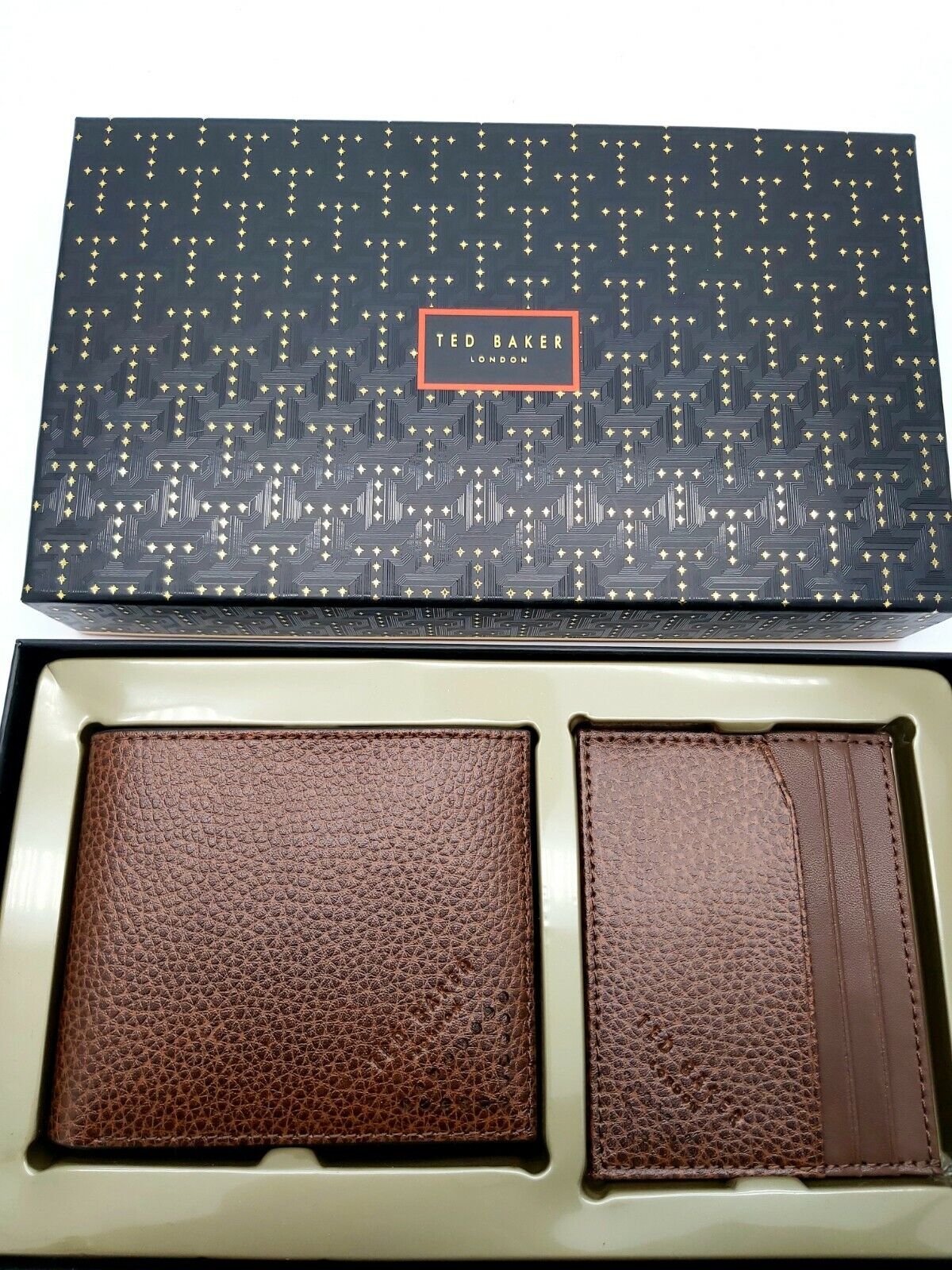 Genuine TED BAKER Brogue GIFT SET : BILLFOLD WALLET & CARDHOLDER Brown