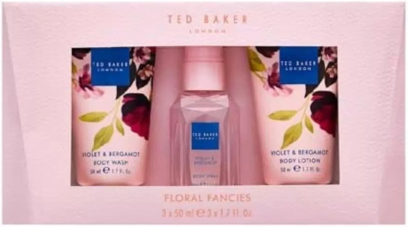 Ted Baker Floral Fancies Gift Set Violet and Bergamot 3 x 50 ml body spray wash