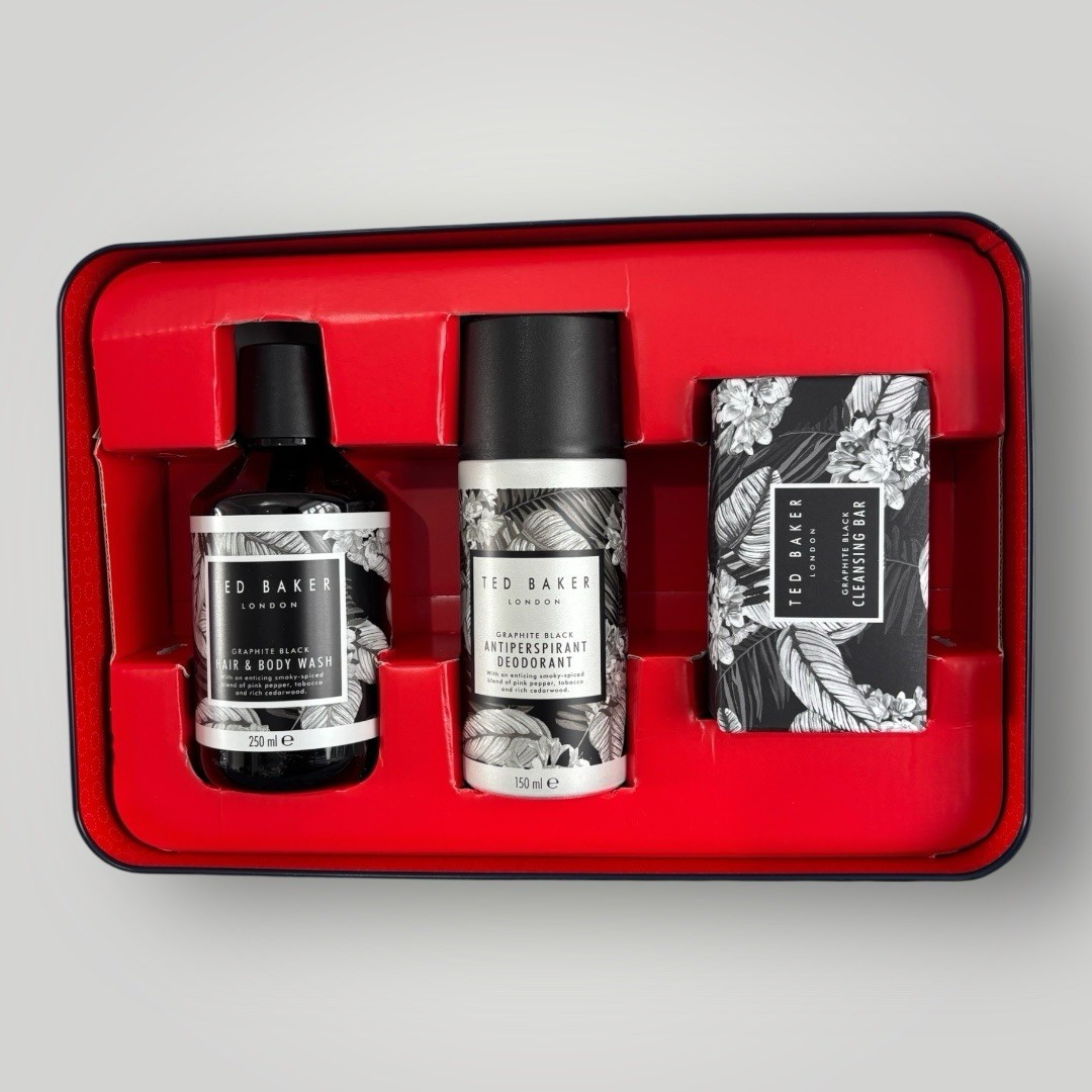 Ted Baker Ted's Tin and Tricks Graphite Black Wash Spray Toiletries Gift Set