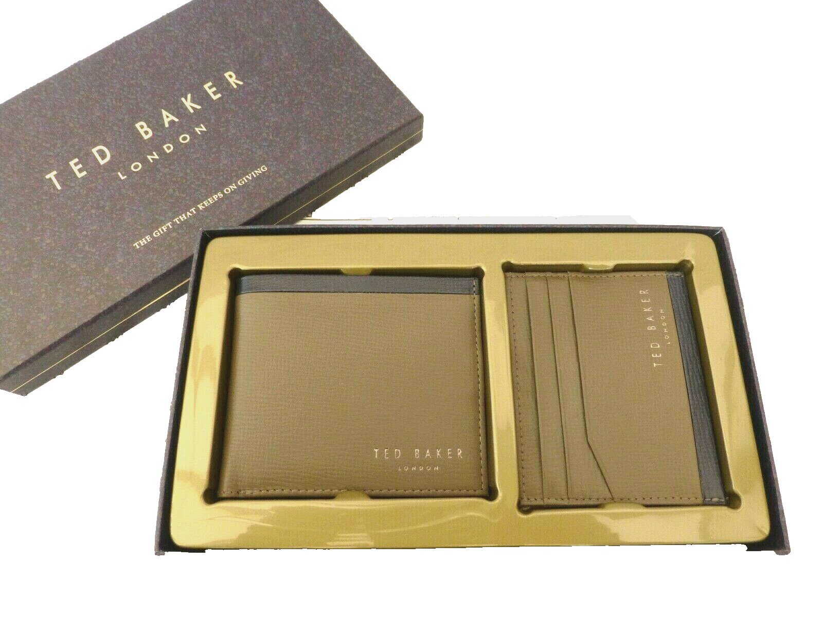 TED BAKER Leather Wallet & Card Holder Gift Set Mens 2in1 Mid-Green Wallets Box
