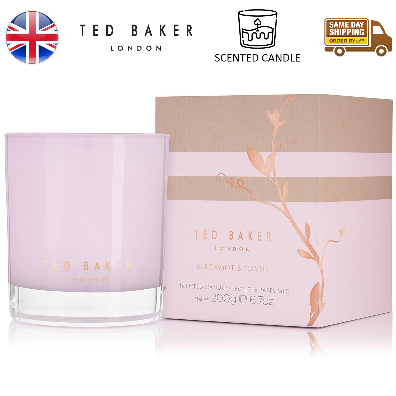 Ted Baker London Luxury Scented Candle Bergamot & Cassis Christmas Gift 200g