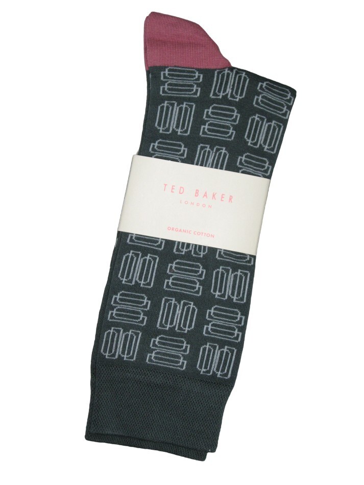 TED BAKER Organic Cotton Geometric Pattern Socks Dark Green