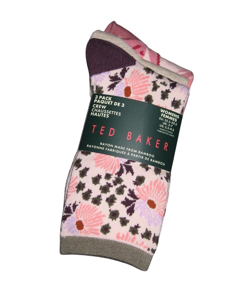 TED BAKER Ladies Bamboo Floral Crew Socks 3 Pairs Size 3 - 7