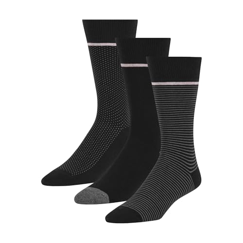 Ted Baker Men's 3 Pack Crew Dress Socks, Black Pattern, One Size