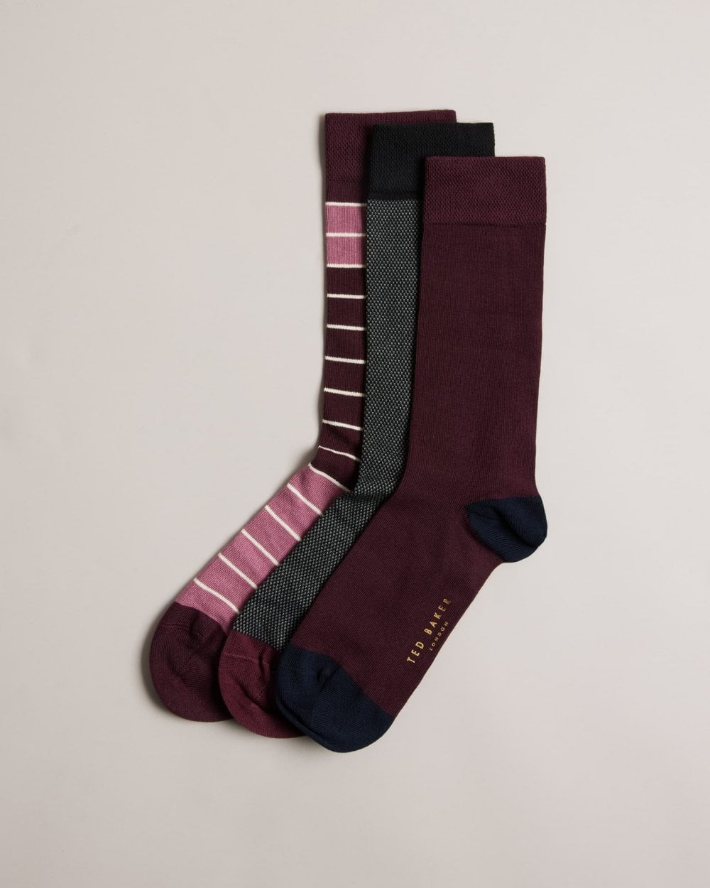 Ted Baker 3-Pack Multi-Patterned Socks Gift Set, Navy/pink