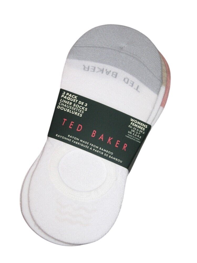 TED BAKER Ladies Bamboo No Show Trainer Liner Socks Size 3 - 7 3 Pairs