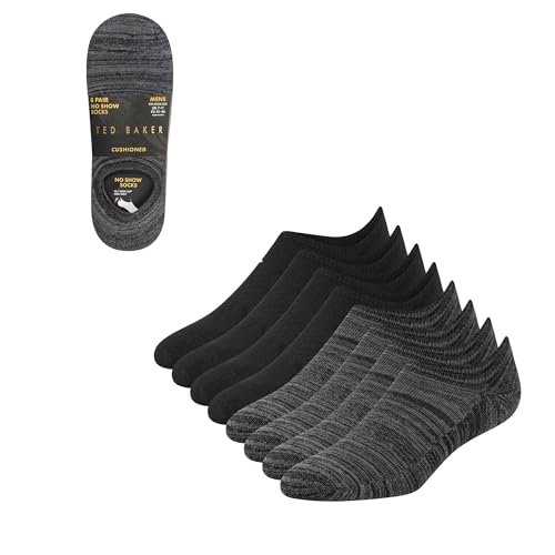 Ted Baker Men's No Show Liner Socks Multipack Non-slip Arch Support (UK, Numeric, 7, 11, Regular, Regular, 8, Black)