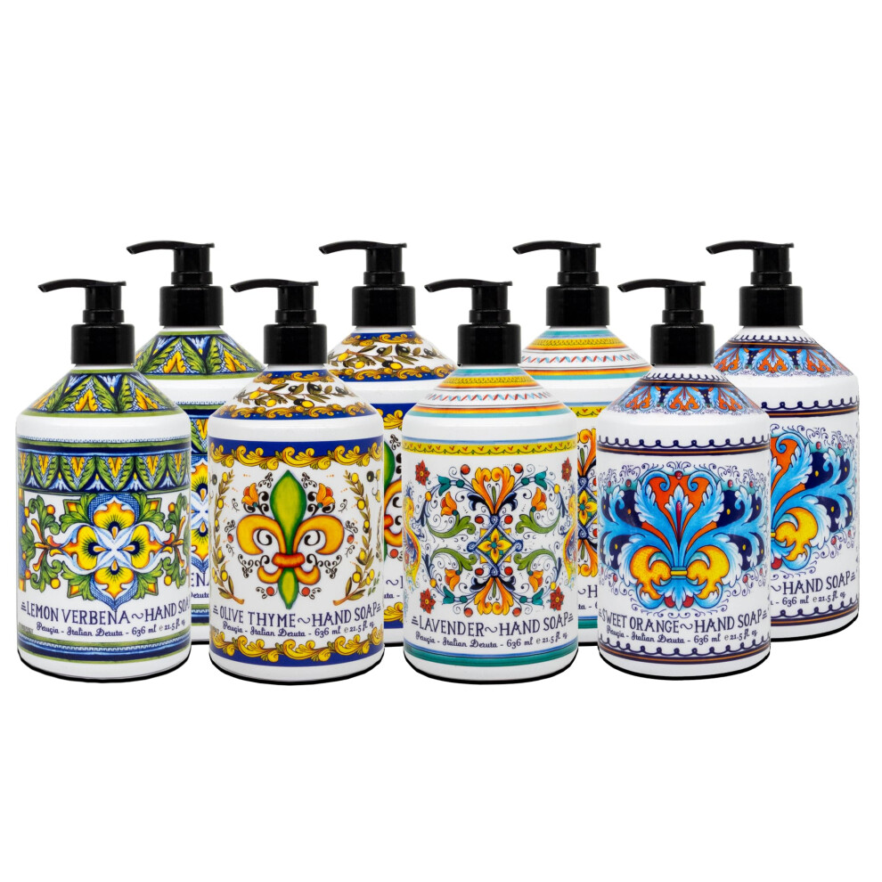 Perugia Italian Deruta Hand Soap - 21.5 fl oz Bottles - 8 pack - Lavendar Sweet Orange Lemon Verbana and Olive Thyme