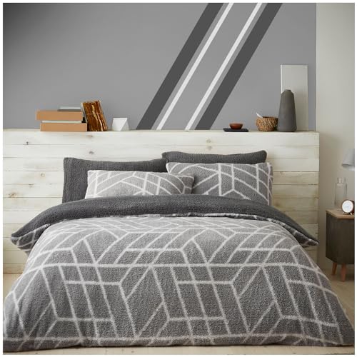 GC GAVENO CAVAILIA Teddy Fleece Duvet Cover Single with Pillowcase - Snuggle Warm Bedding Set - Cosy Bed Linen - Grey