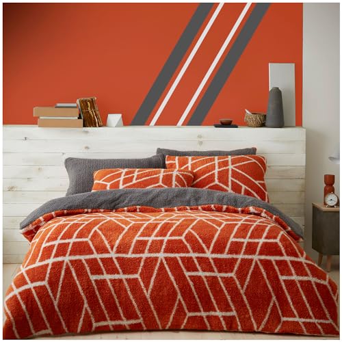 Sleepdown Teddy Fleece Rust Orange Duvet Cover Quilt Bedding Set with Pillowcases Thermal Warm Cosy Super Soft Easy Care Bed Linen - King (230cm x 220cm), 5056557512201