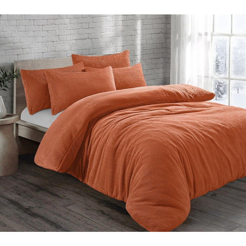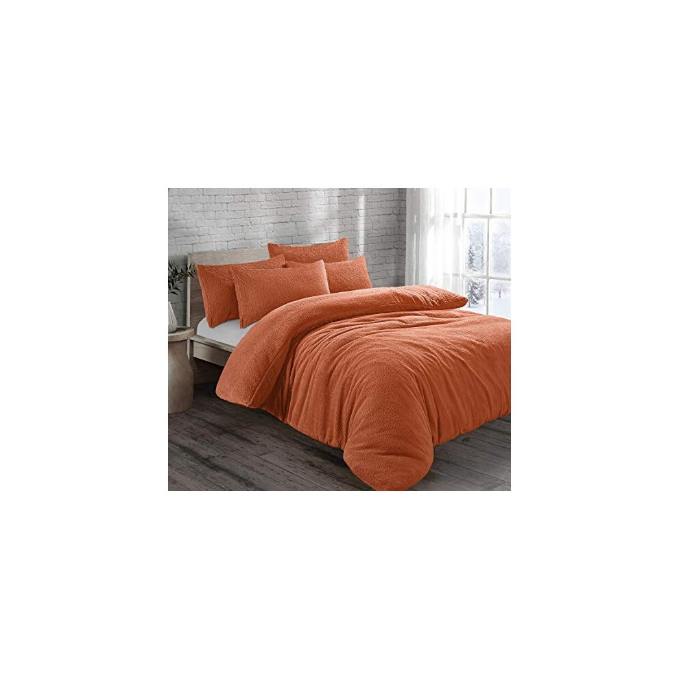 Tangerine Cozy Teddy Bear Fleece Duvet Cover Set | Sherpa Thermal & Soft Warm Bedding for Ultimate Comfort (Double)