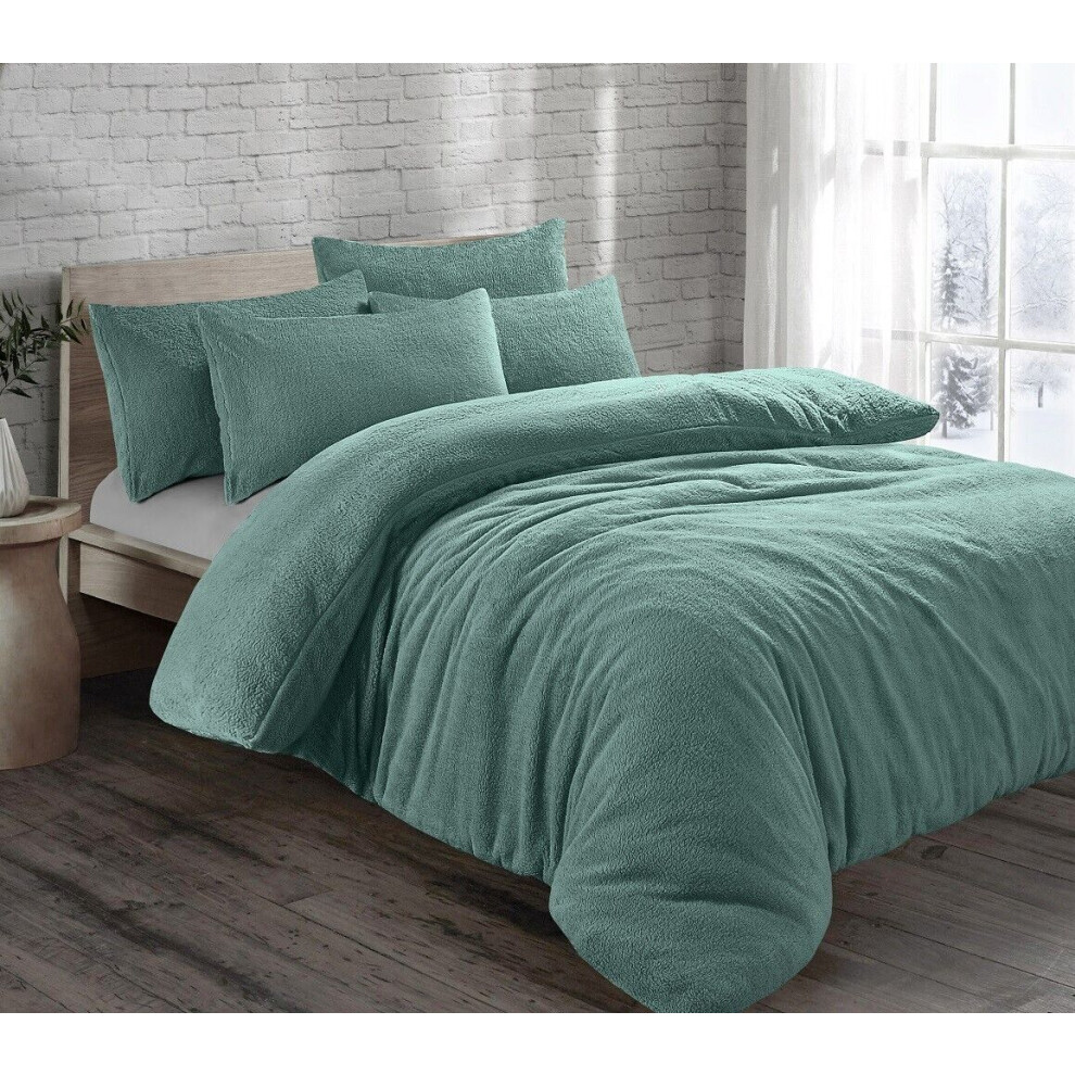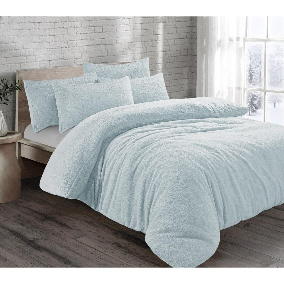 Cozy Teddy Bear Fleece Duck Egg Duvet Cover Set | Sherpa Thermal & Soft Warm Bedding for Ultimate Comfort (Double)