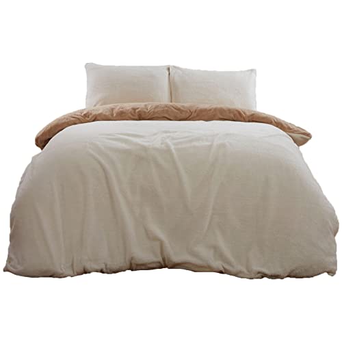 Brentfords Reversible Teddy Fleece Duvet Cover with Pillow Case Supersoft Fluffy Thermal Warm Soft Bear Bedding Set, Mink Latte Cream - Double