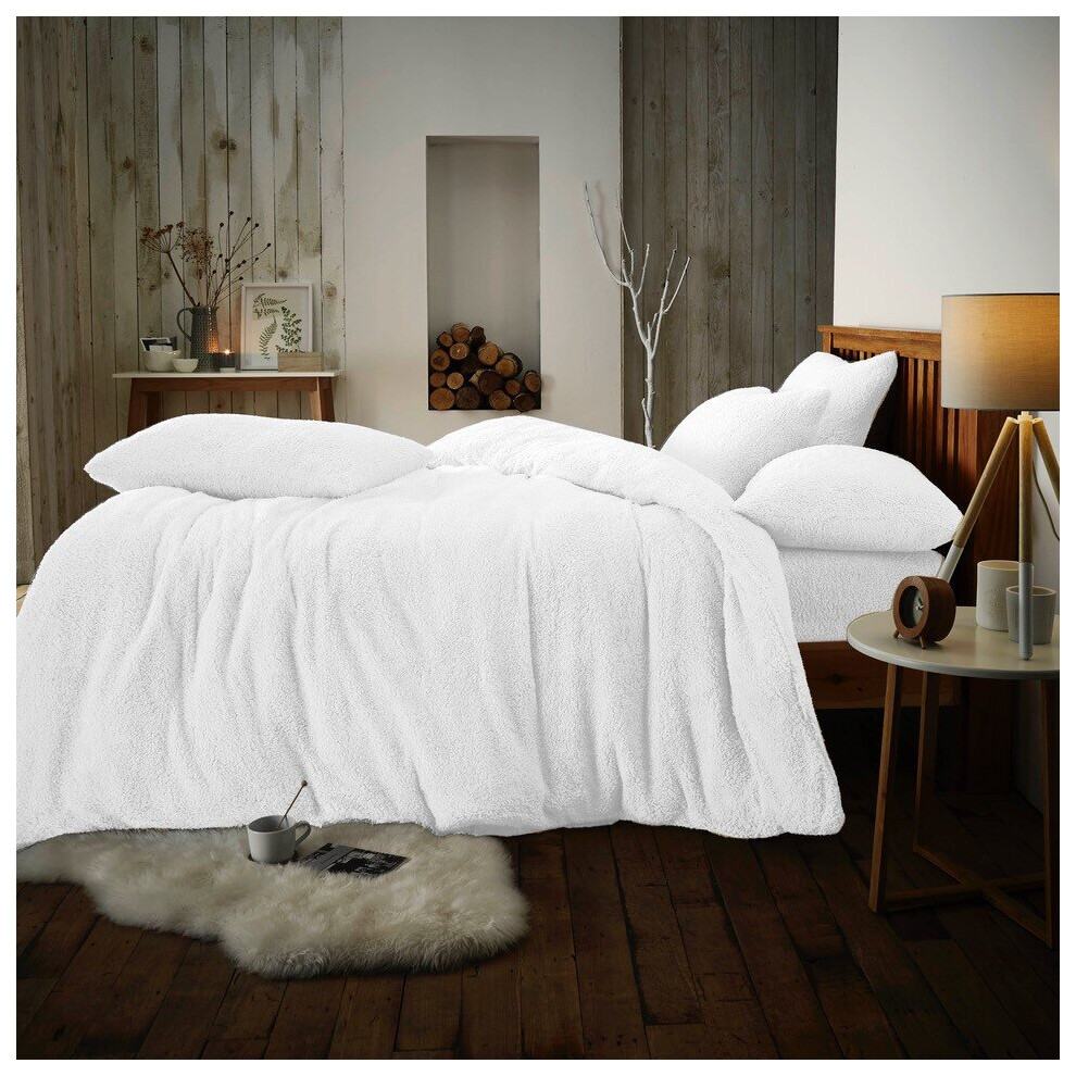 Brentfords Teddy Fleece Double Duvet Set White, Double Bed Duvet Covers Winter Bedding Double Bed Set with Pillowcases Teddy Bear Fleece Quilt Cover Super Soft Comfy