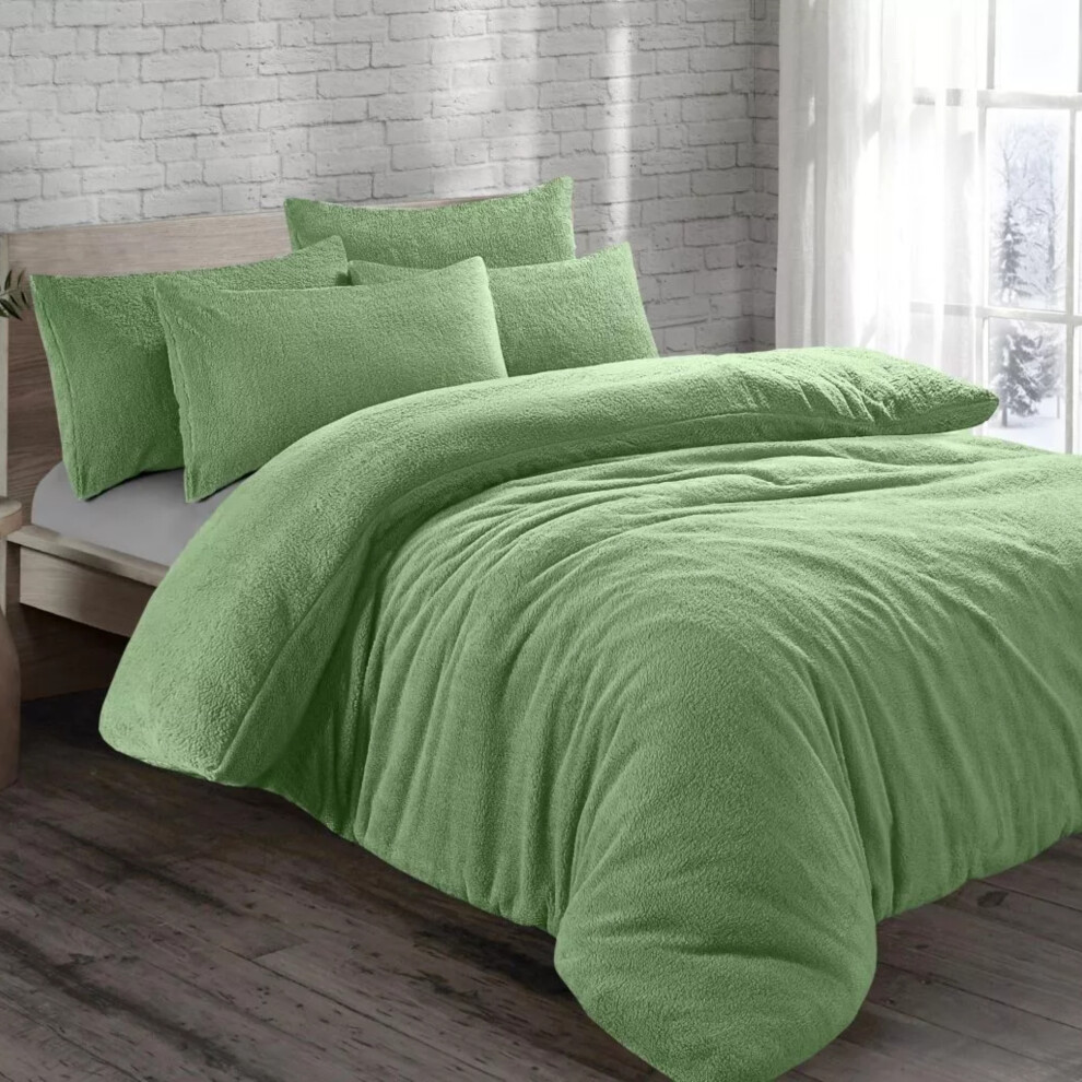Cozy Teddy Bear Fleece Sage Duvet Cover Set | Sherpa Thermal & Soft Warm Bedding for Ultimate Comfort (Double)
