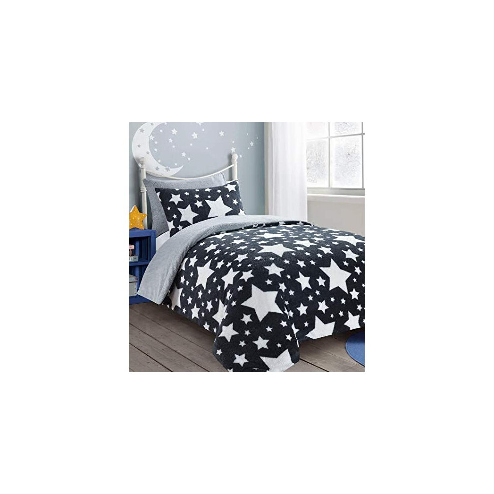 HOMES-LINEN Teddy Star Fleece Duvet Cover Set Soft Cosy Warm Kids Star Teddy Bear Bedding Set (Charcoal & Silver, Double)