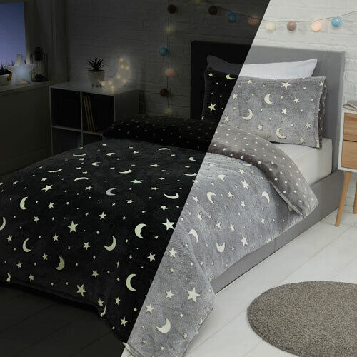 Teddy Bear Fleece Moon Stars Glow in the dark Double Bedding Set